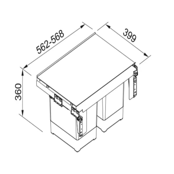 Franke - Sorter Garbo - 60-2 - 2x18 liter deur-gemonteerde afvalemmer & recyclebak