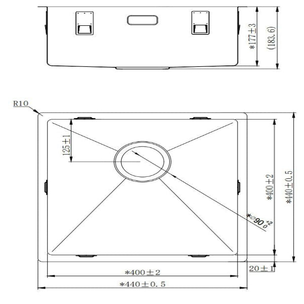 Lorreine - Vierkante RVS Keukenspoelbak - 40x40 cm - Model 40-R